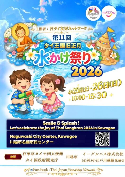 第11回 タイ王国旧正月 水かけ祭り2026は、埼玉県川越市で4月に開催されるタイの旧正月を祝うイベントで、名細市民センターを会場にタイの伝統文化に触れられる催しです。